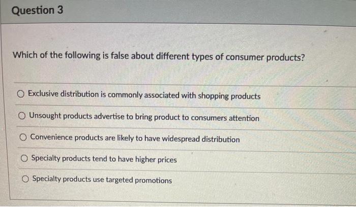 Solution By Examveda Team Consumer products are products and services bought by final consumers for personal consumption. Consumers dont know about or dont actively look for. 856 students attemted this question.